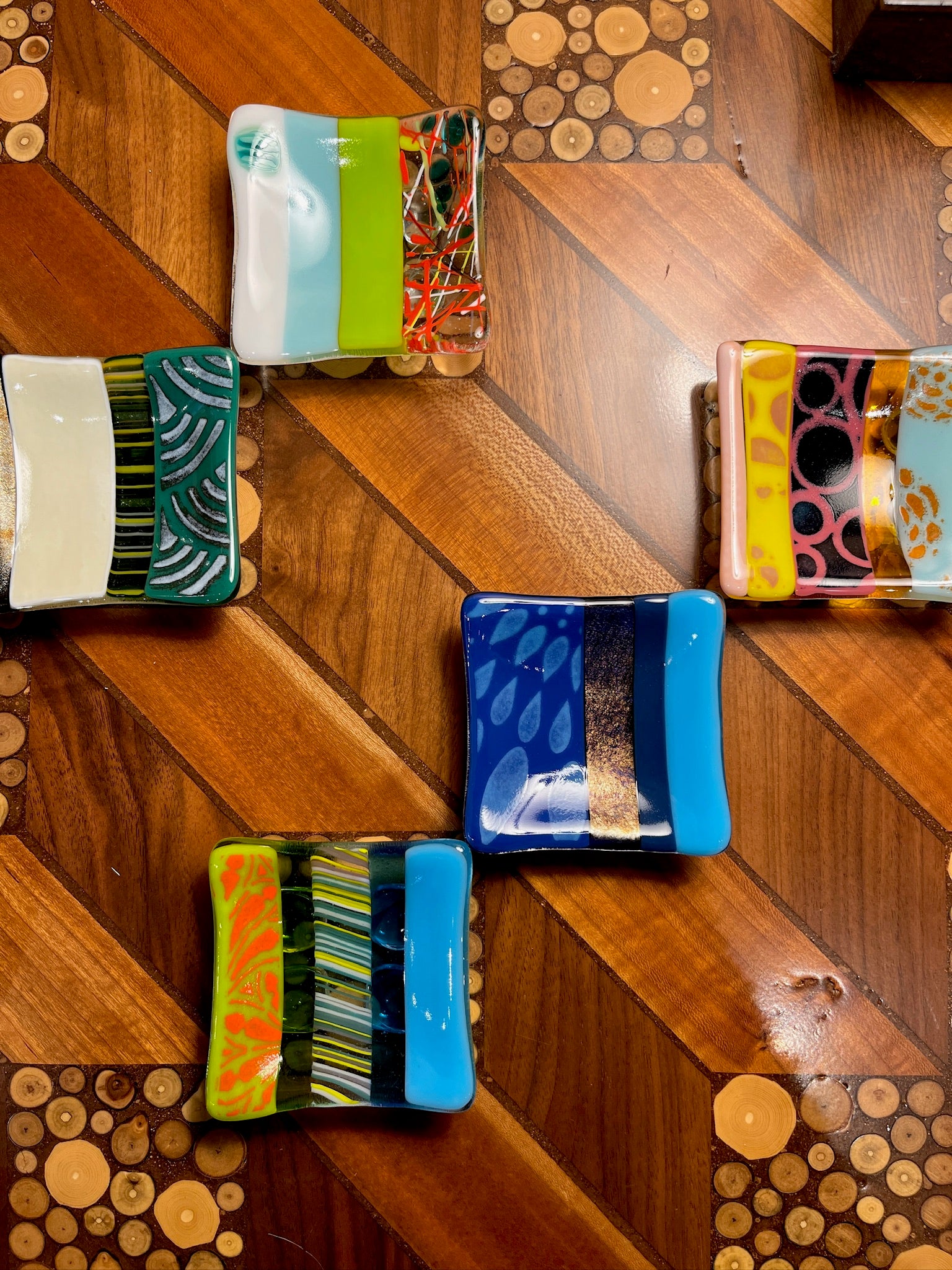 The perfect small footed dish for anything you can think of--rings, teabags, olive pits, hearing aids, you name it! You'll just keep coming up with uses for these unique fused glass pieces of art!